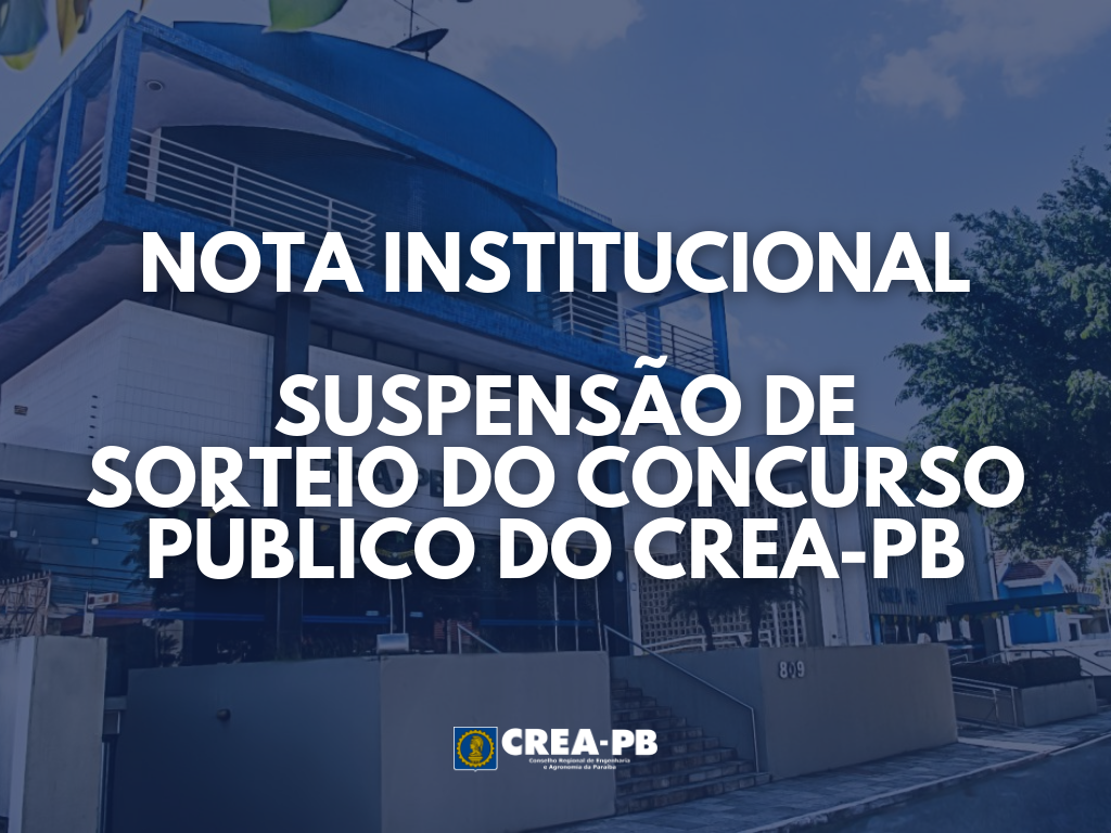 Nota Institucional – Suspensão de Sorteio do Concurso Público do CREA-PB